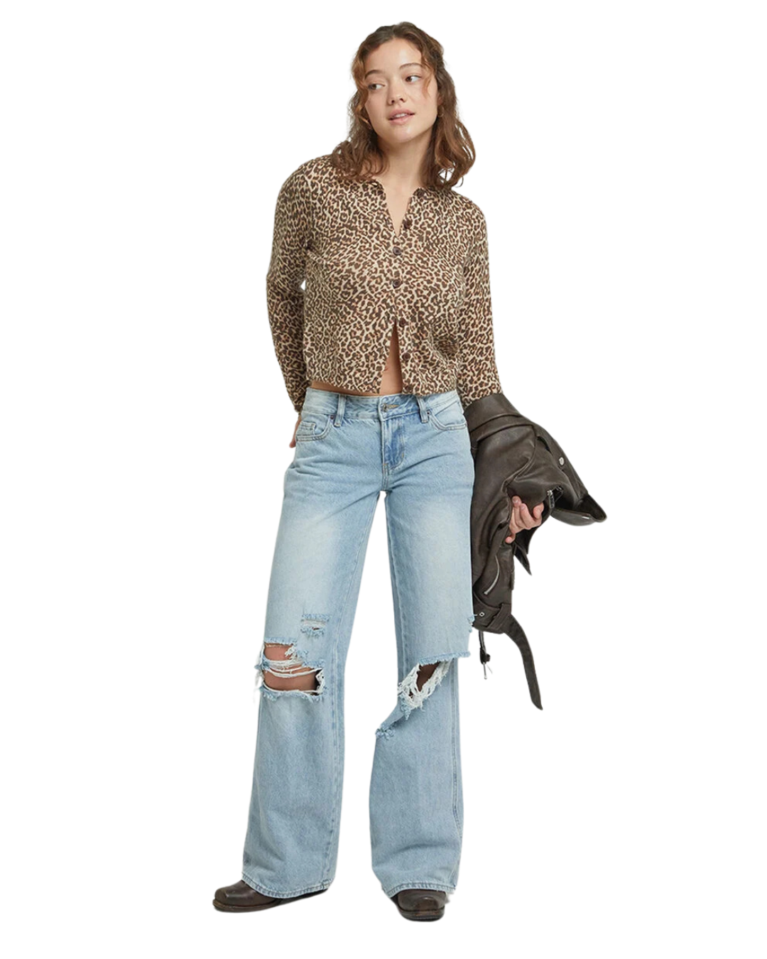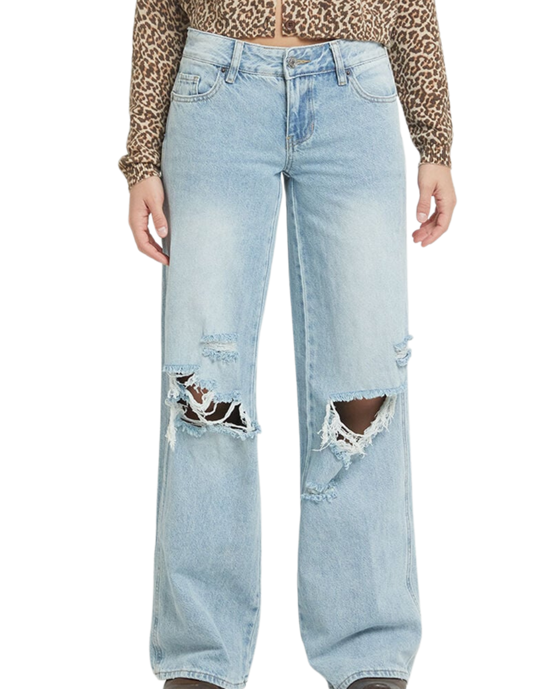 Acești blugi cu efect uzat și tăieturi moderne adaugă atitudine și rafinament casual ținutelor tale de zi cu zi.