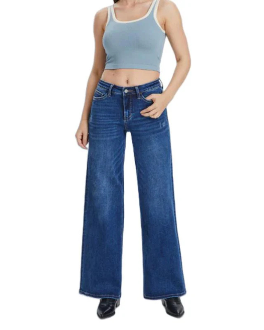 Blugi Largi cu Talie Medie-Joasă pentru Femei