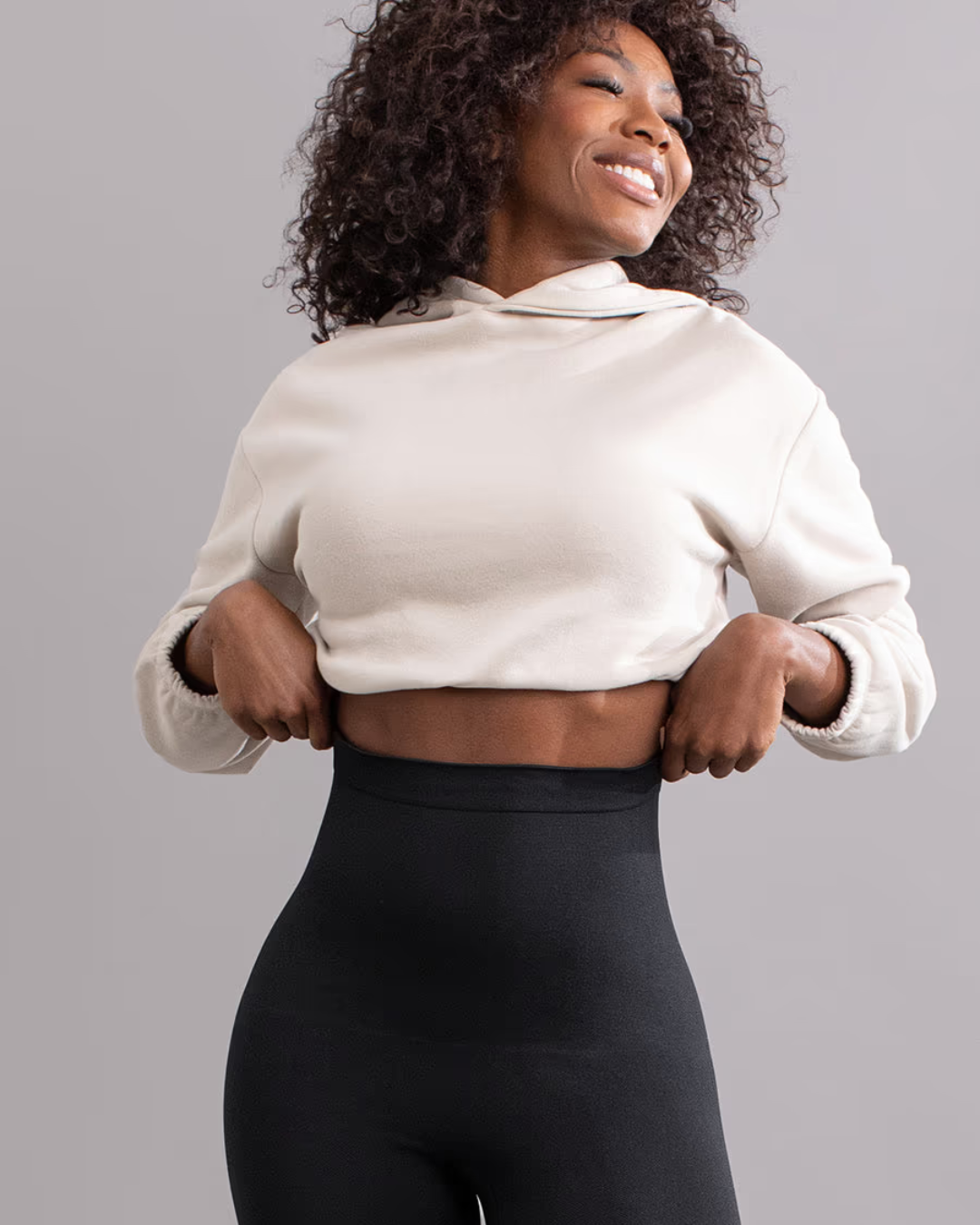 Talie înaltă și țesătură modelatoare care vă sporește curbele cu confort și stil.