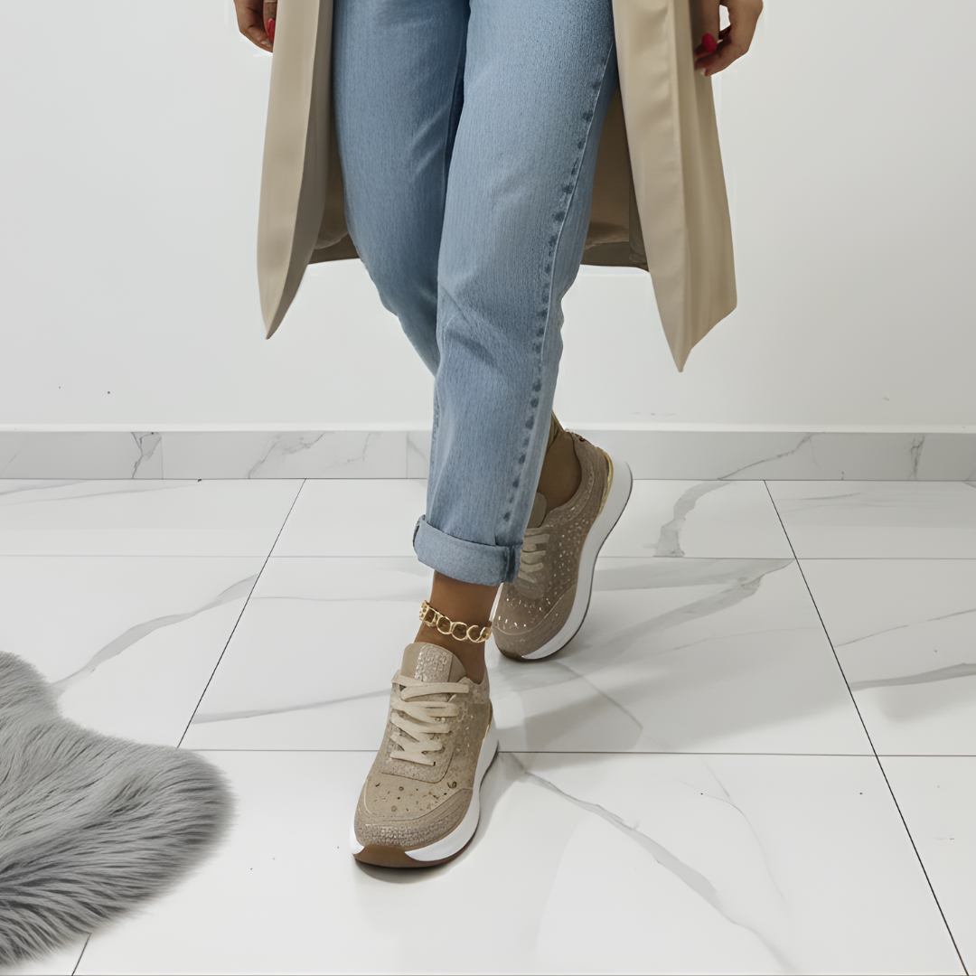 Pantofii sport Diamante sunt concepuți pentru femeia care dorește să combine confortul unei încălțăminte sport cu o notă de rafinament. Finisajul lor este pus în valoare de detalii strălucitoare subtile care captează lumina, transformând un accesoriu de bază într-o piesă cheie de stil care iese în evidență în orice ținută.